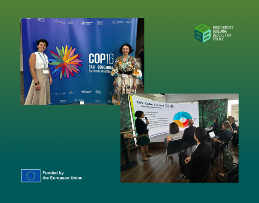 On 21 October at the Geo BON Pavilion, Dr Lina Estupinan-Suarez, a B-Cubed project partner, from the German Centre for Integrative Biodiversity Research (iDiv) Halle-Jena-Leipzig, organised a live demonstration session on the Essential Biodiversity Variables Data Ecosystem, a set of tools designed to enhance data standardisation and support National Biodiversity Strategies and Action Plans reporting. During that session,