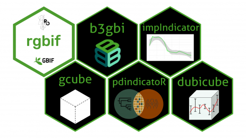 It includes six core packages: rgbif and gcube for data generation, b3gbi, pdindicatoR, and impIndicator for biodiversity indicator calculations, and dubicube for uncertainty estimation. These tools support workflows for downloading, simulating, and analysing biodiversity data.