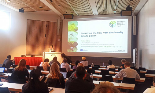 Yanina Sica from JLU introduced B-Cubed in her presentation “Improving the flow from biodiversity data to policy”, focussing on her work on European and Global policy analysis and stakeholder consultation. She highlighted challenges such as difficulties in extracting and harmonising species data from non-tabular species lists in European policies and the overwhelming number of indicators lacking clear metadata at the global level. Furthermore, Yanina presented B-Cubed’s developments, including data and modeled cubes, as potential solutions.